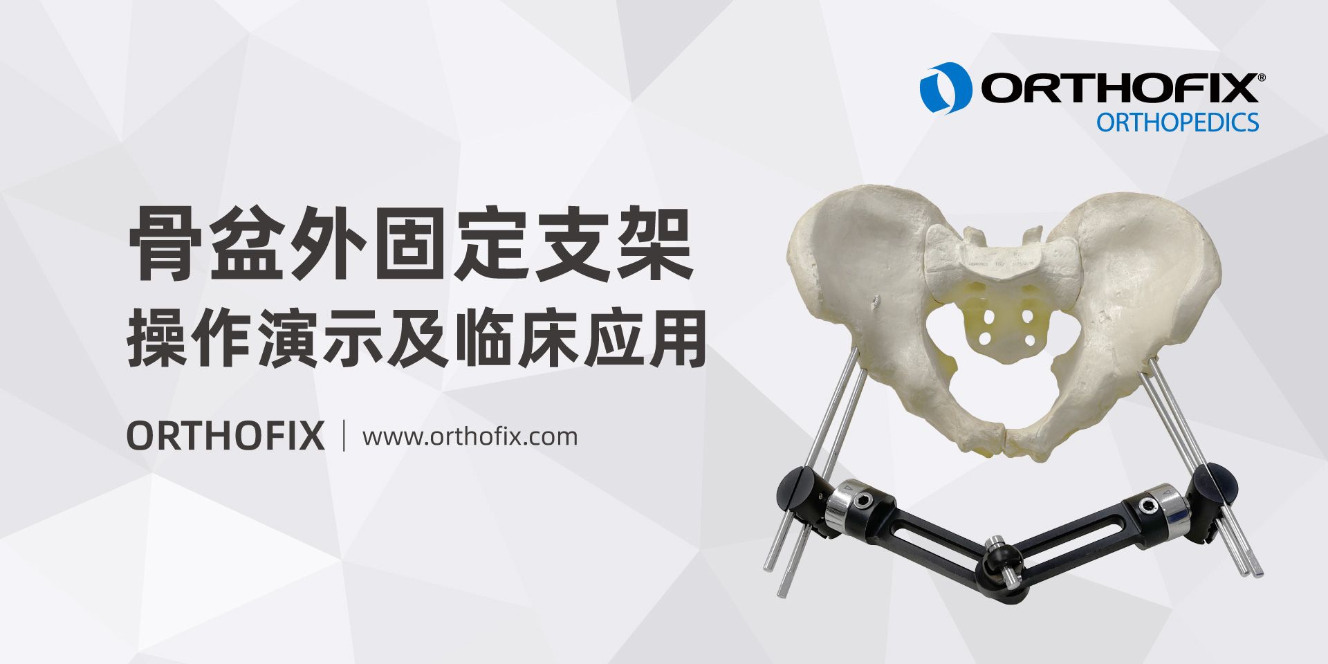 骨盆外固定支架是一种用于快速稳定骨盆的可调节连接系统。Orthofix的骨盆外固定支架的稳定性通过插入骨盆的自攻螺钉以及骨盆链-骨盆链连接器-骨盆链组成的外架主体来实现,系统结构简易便于操作,球头关节便于骨折复位。此外,滑动连接系统可使外架适用于各种骨盆尺寸,从而显著减少了备货规格。